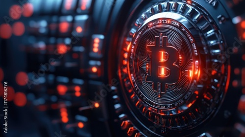 Illuminated Bitcoin Coin in Futuristic Technology Setting