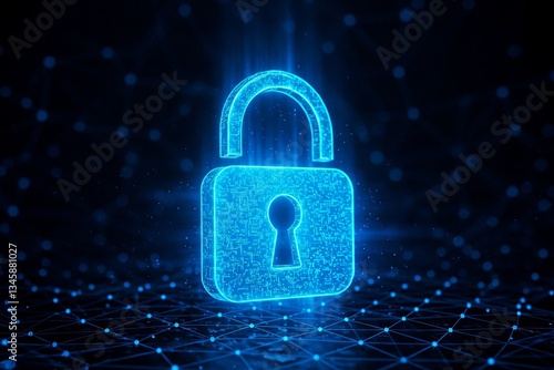 Illuminated Blue Digital Padlock Represents Secure Information Access