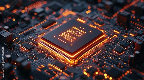 Illuminated Central Processing Unit on Circuit Board