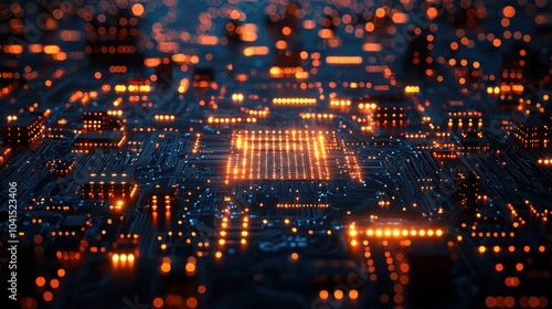 Illuminated Circuit Board with Glowing Components
