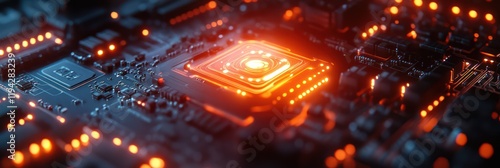 Illuminated Circuits: A Close-Up of a Computer Chip's Glowing Core