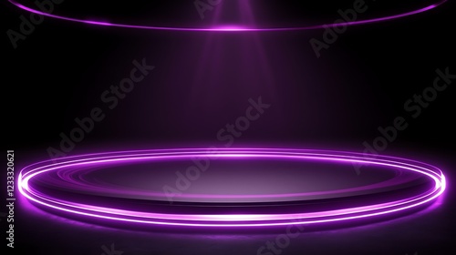 Illuminated Circular Platform with Purple Neon Lights
