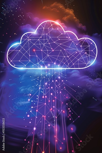 Illuminated Cloud Computing Networking Technology Connections Digital Landscape Abstract Background