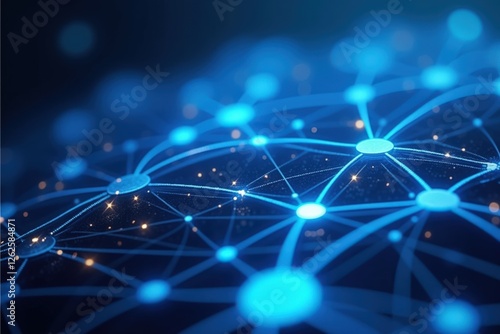 Illuminated Digital Network Connectivity Representing Global Data Exchange in a Futuristic Tech Environment Through Interconnected Nodes and Blue Light Patterns