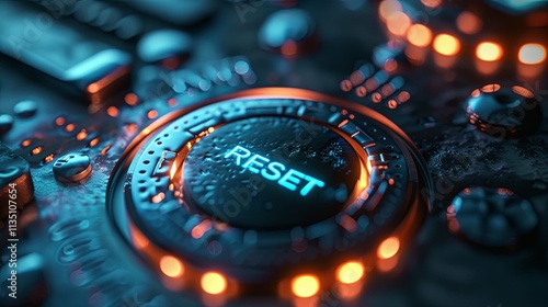 Illuminated Futuristic Reset Button on a Technological Control Panel