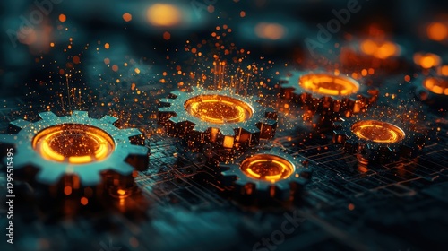 Illuminated gears and cogs connecting on a circuit board network