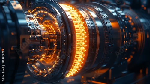 Illuminated Internal Engine Components Showing Precision Engineering and Technological Advancement