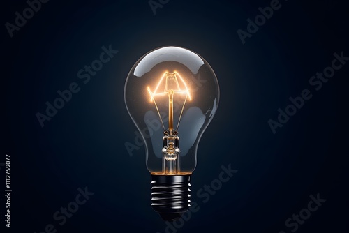 Illuminated light bulb on dark background showcasing filament structure
