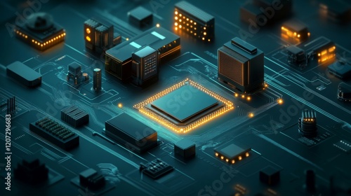 Illuminated Microchip Circuit Board: A Glowing Network of Technological Components