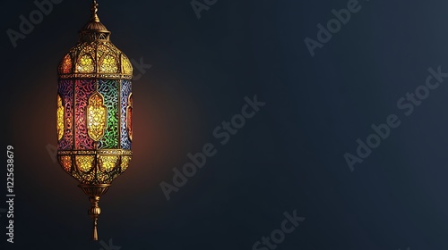 Illuminated Ornate Lantern Against Dark Background