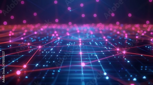 Illuminated Pink and Blue Grid Lines on Dark Background