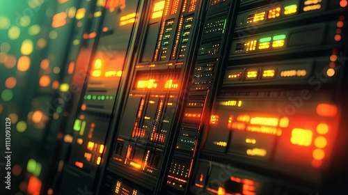 Illuminated Server Racks Displaying Data Processing