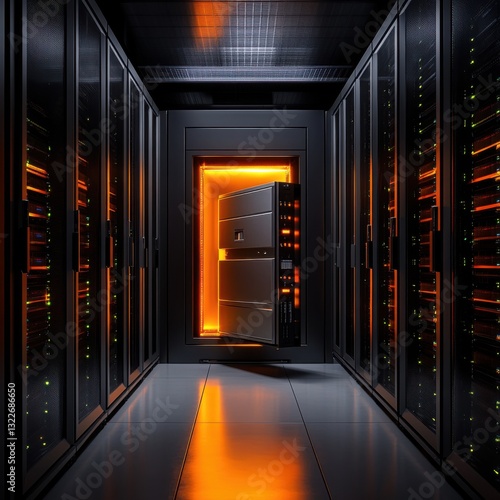Illuminated Server Room Corridor: A Glimpse into Digital Security