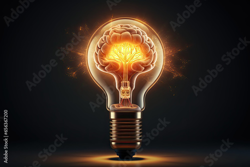 Illuminating Ideas: A Brain Inside a Light Bulb, Symbolizing Brainpower, Innovation, Knowledge, Creativity, and Intelligence