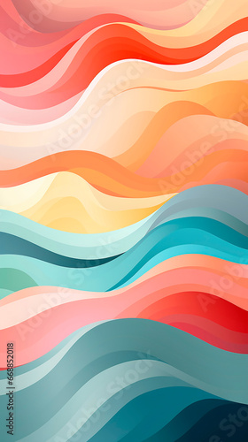 Illustration, a colorful rainbow design with a horizontal stripe pattern, in the style of organic forms, muted tones, light orange and pink, whimsical minimalist. Drawing, abstract background.