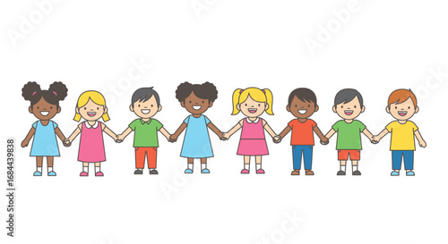 Illustration of diverse children holding hands