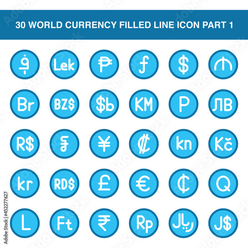 Illustration vector graphic icon of World Currency Icon Set Part 1. Filled line style icon. Vector illustration isolated on white background. Perfect for website or application design.