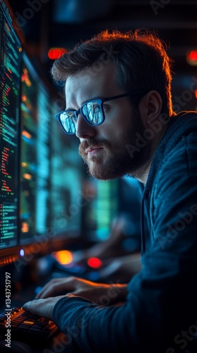 Image of a programmer at a computer with coding on screen, suitable for illustrating technology articles, blogs about programming and IT education.