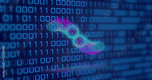 Image of circles over binary code on navy background