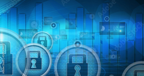 Image of data processing over blue background