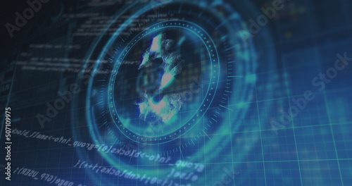 Image of dollar sign on rotating safe lock over data processing