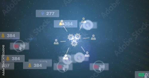 Image of media icons and light trails on black background