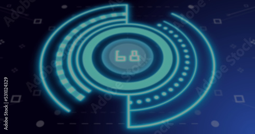 Image of scope scanning with data processing over cloud icons and shapes