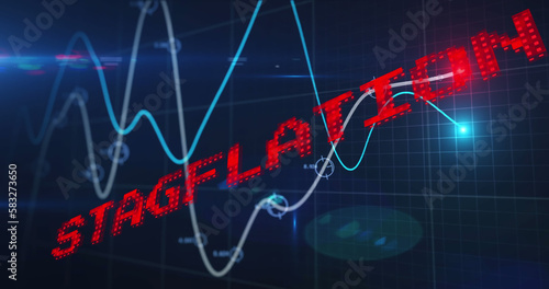 Image of stagflation text in red over graph and processing data