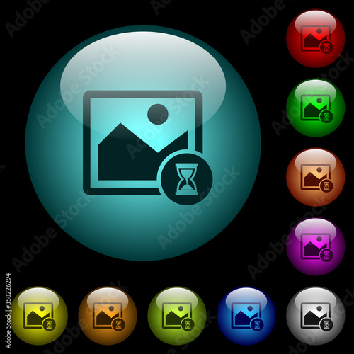 Image processing icons in color illuminated glass buttons
