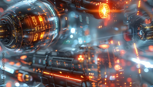 Immerse viewers in a futuristic world through a side view perspective featuring advanced technologies rendered in a photorealistic style with a touch of surrealism Play with unexpe