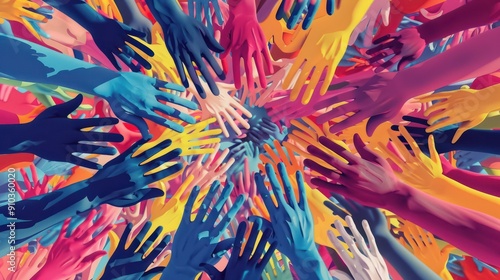 Inclusion diversity icon Diverse Hands in Unity Circle multiple hands in circular unity pattern representing diversity and collaboration. Generative ai vector illustration