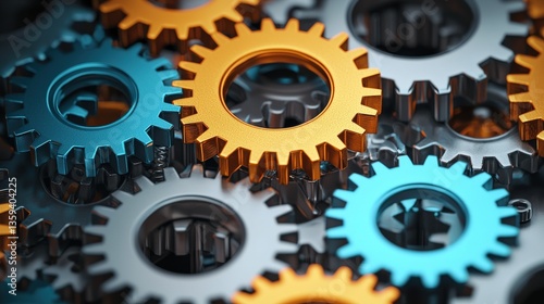 Income Tax government system concept. Colorful gears interlocked in a mechanical design.