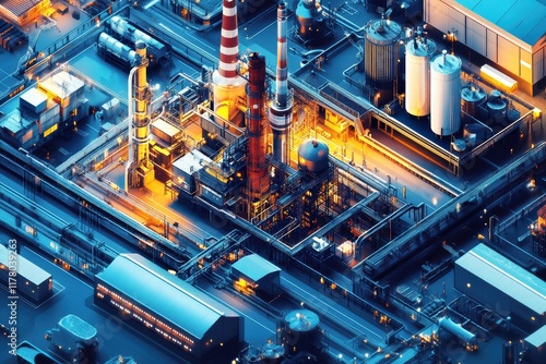 Industrial facility at night showcasing complex machinery and illuminated structures