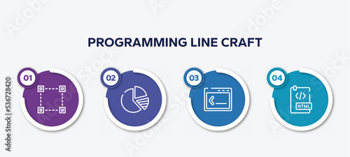 infographic element template with programming line craft outline icons such as selection square, pie charts, command line, html document vector.