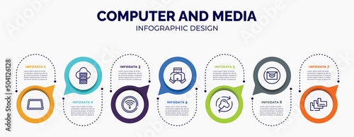 infographic for computer and media concept. vector infographic template with icons and 7 option or steps. included null, server cloud, wifi connection to internet, null, synchronize with internet,
