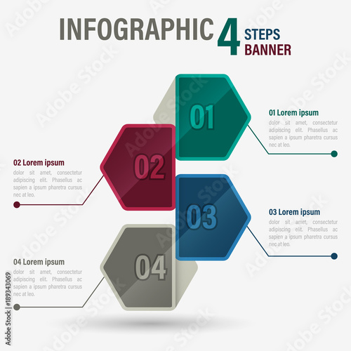 Infographic four steps vector banner with hexagonal elements. Part 15.