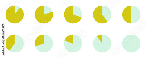 Infographic pie chart collection, pie chart icon isolated on transparent background