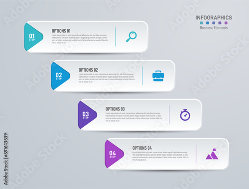 Infographics design template, business concept with 4 steps, table or options, can be used for workflow layout, diagram, annual report, web design, presentation. Creative banner, label vector.