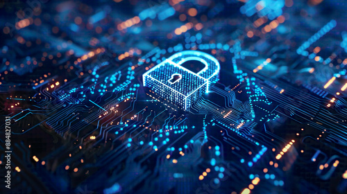 Information security and encryption concept secure cyber access to user data lock symbol andwith tech elements modern and secure design