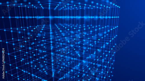 Information storage cells. Abstract background with dots and lines. Network connection structure. Big data digital background. 3D rendering.