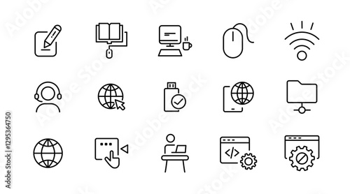 Information technology line icon set. Cloud computing, big data, data analytics, IT network, internet, website, data, software, cloud, server icon collection. UI thin outline icon pack