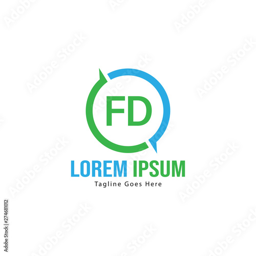 Initial FD logo template with modern frame. Minimalist FD letter logo vector illustration
