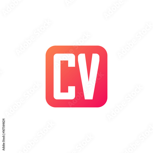 Initial letter CV, rounded letter square logo, modern gradient red color