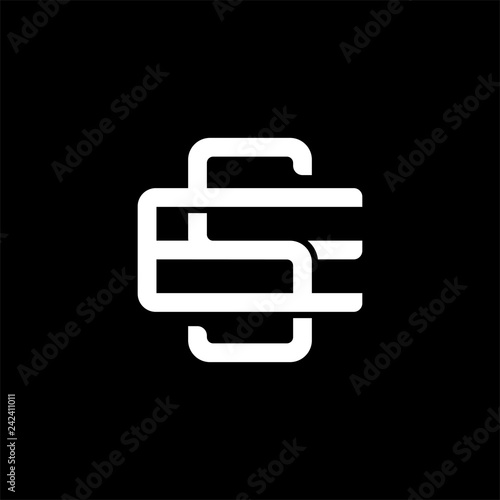 Initial letter E and S, ES, SE, overlapping interlock monogram logo, white color on black background