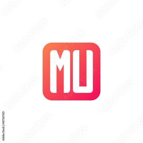Initial letter MU, rounded letter square logo, modern gradient red color