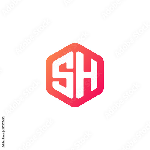 Initial letter sh, rounded hexagon logo, gradient red orange colors