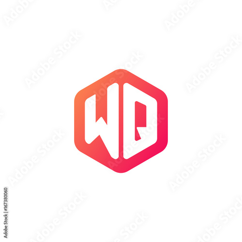 Initial letter wq, rounded hexagon logo, gradient red orange colors