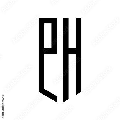 initial letters logo ph black monogram pentagon shield shape