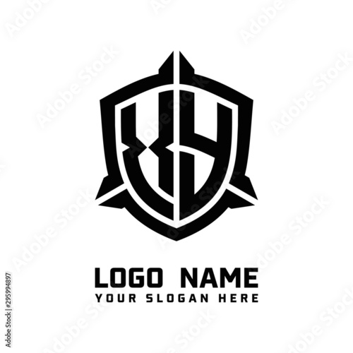 initial XY letter with shield style logo template vector. shield shape black monogram logo