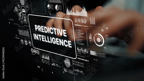 Innovative Digital Interface Showcasing Predictive Intelligence Technology with Data Visualizations and User Interaction. Asymptotic smart data analytic.